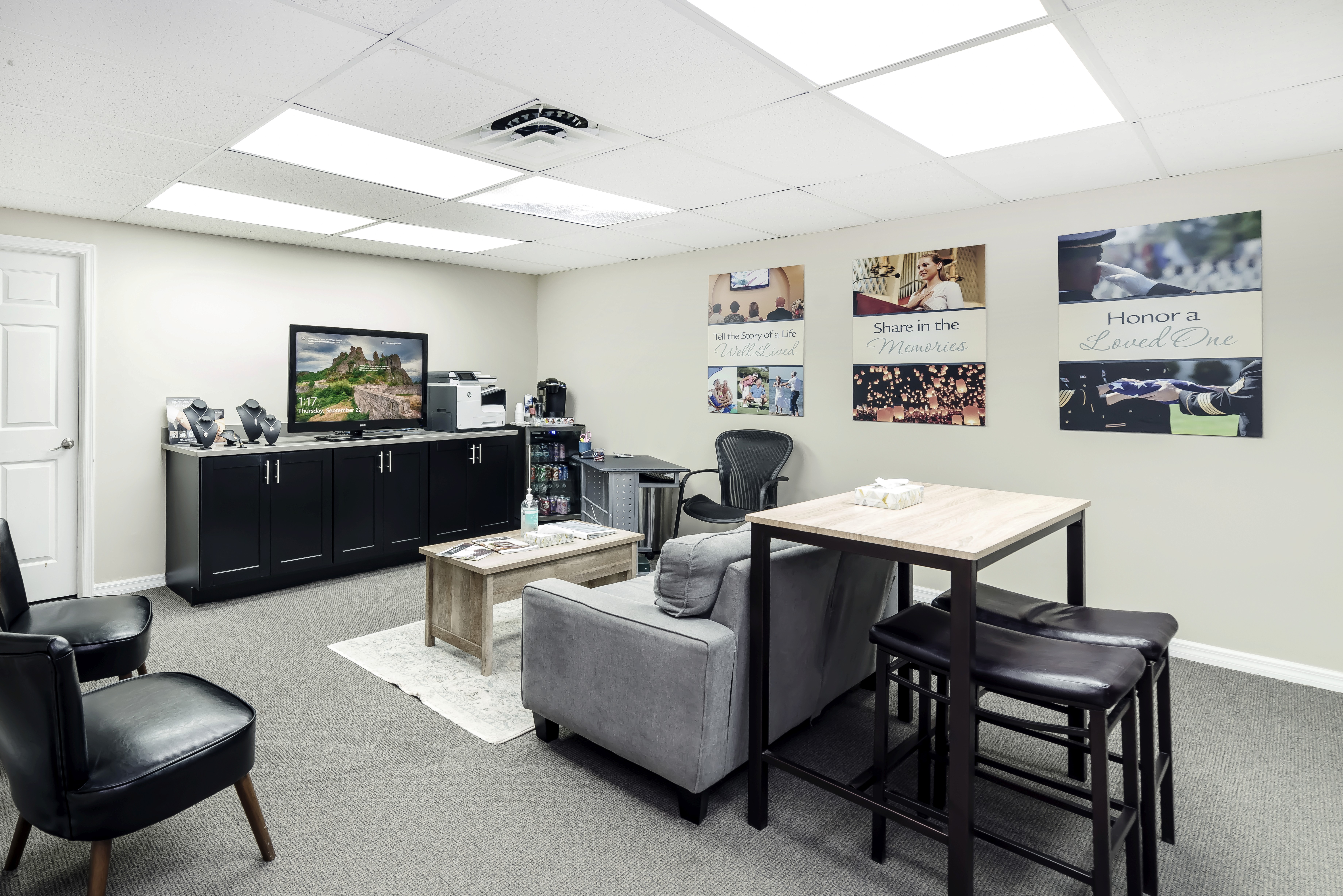 Basic services of the funeral home and staff, transportation into our care, refrigeration, standard cremation fee if applicable.